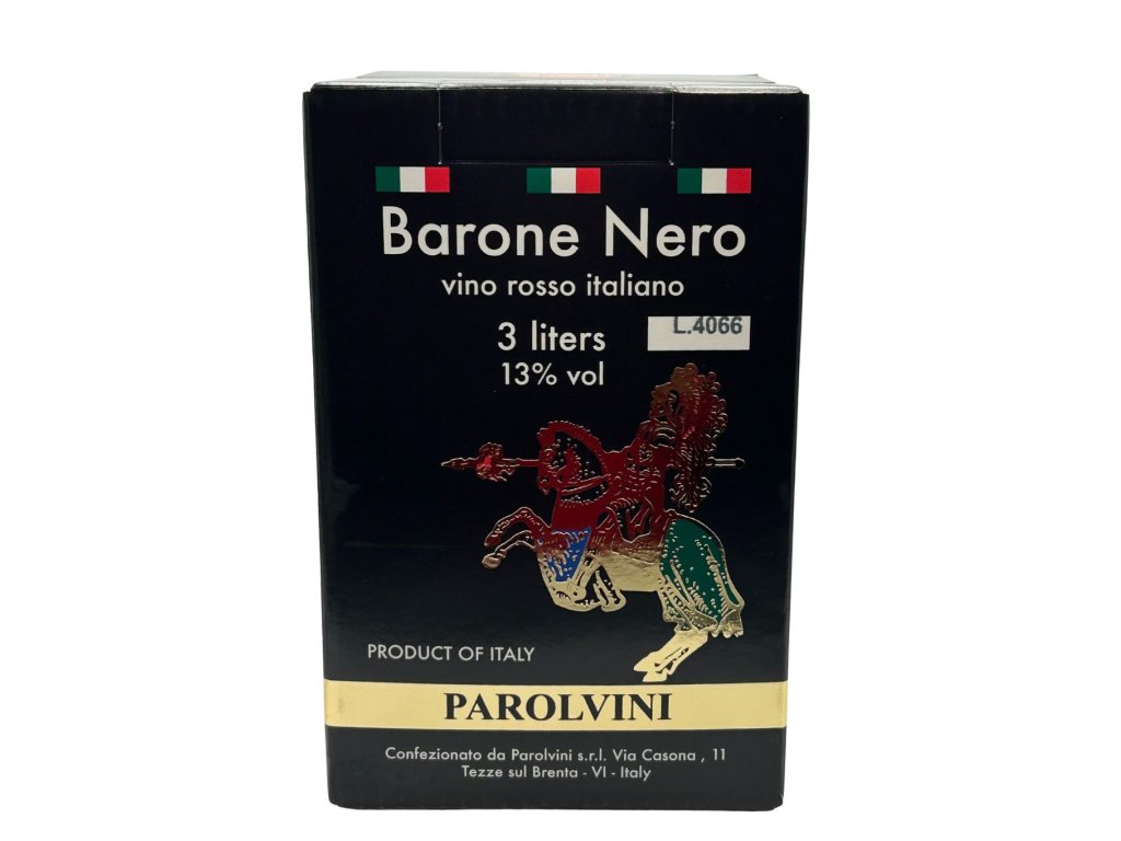 Italské červené víno Rosso Barone Nero z vinařství Parolvini v praktickém 3l balení. Plné, jemně kořeněné a ovocné víno s harmonickou chutí, ideální k červenému masu a sýrům.