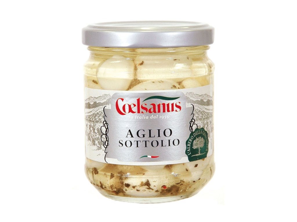 Aglio Sott’olio od výrobce Coelsanus jsou kvalitní česnekové stroužky konzervované v aromatickém oleji. Díky šetrné úpravě se česnek stává jemným a měkkým, bez agresivní syrové štiplavosti, ale s plným a výrazným aroma.
