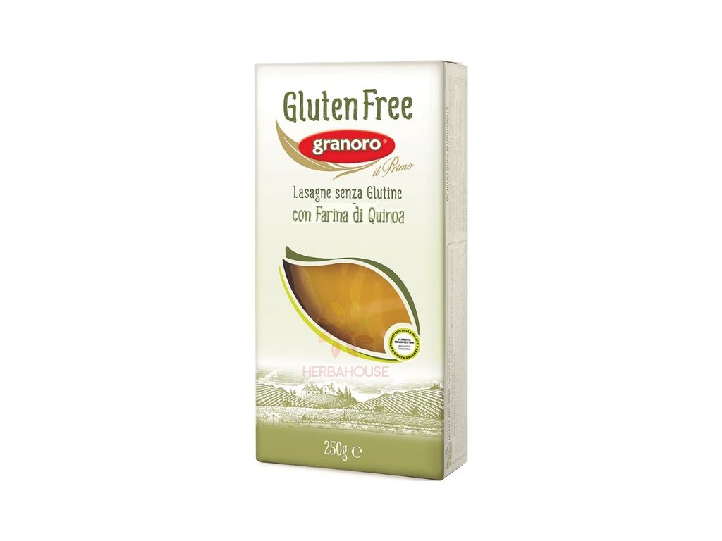 Bezlepkové lasagne Granoro vyrobené z kukuřičné, rýžové a quinoové směsi. Pevné, pružné a vhodné pro vegany i osoby s intolerancí na mléko. Bez GMO.