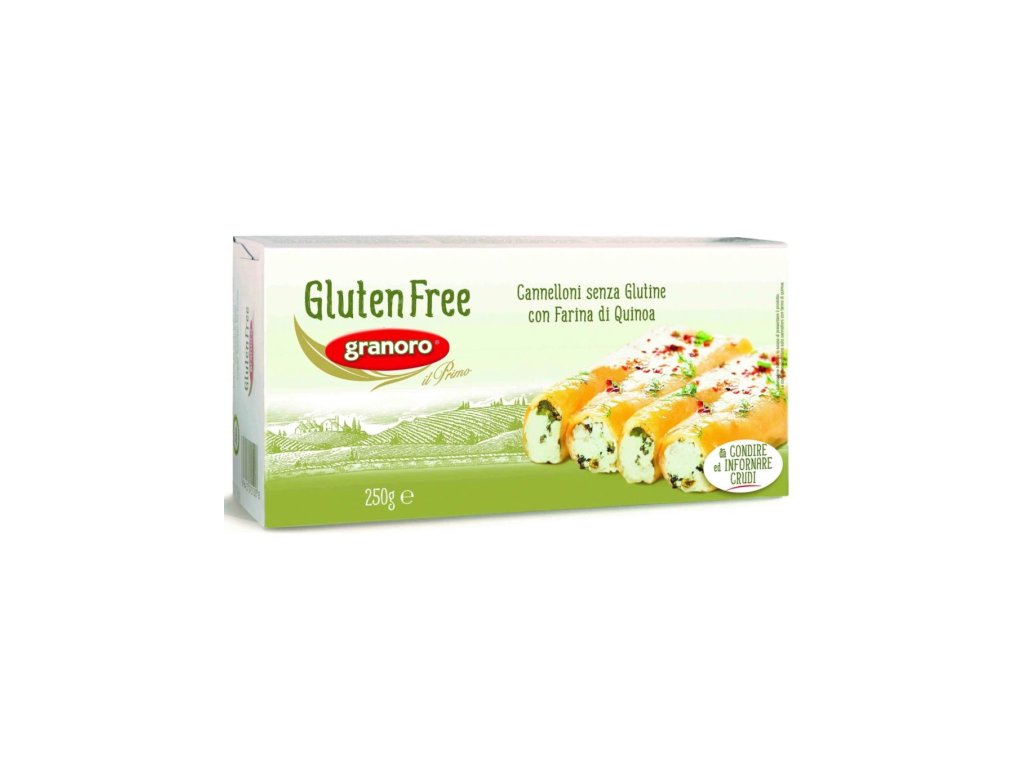 Bezlepkové cannelloni Granoro z kukuřičné, rýžové a quinoové mouky. Pevná struktura, výborná chuť a vhodné pro zapékání s masovými, zeleninovými i sýrovými náplněmi. Balení 250 g.
