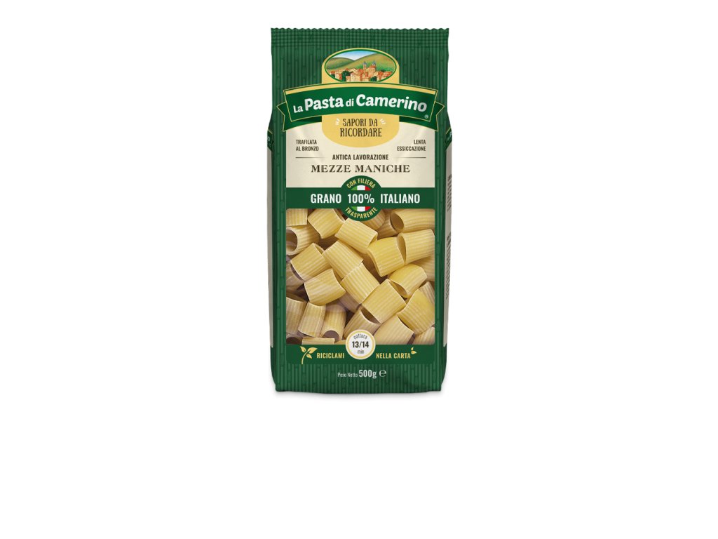 Tradiční Mezze Maniche z tvrdé pšenice podle starověkého receptu. Díky svému tvaru a struktuře perfektně vážou omáčku a hodí se k tradičním i moderním receptům. Vaří se 13–14 minut.